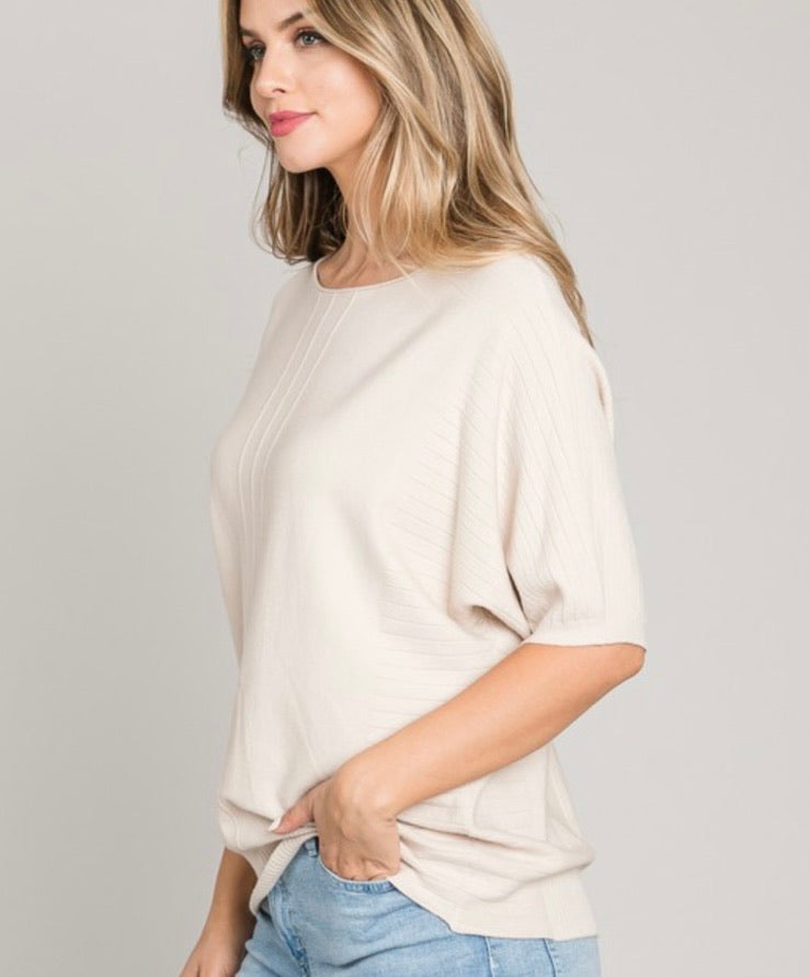Soft fine gauge short sleeve dolman sweater